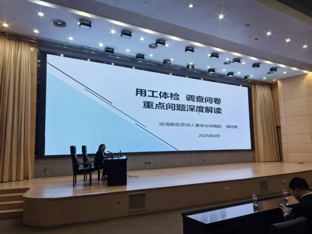 协同发力织密防护网。近日,区人社局深化“人社敲门行动”服务机制,联合东疆人社局面向40余名企业代表开展企业合规用工专题培训。区仲裁院选派3名专兼职仲裁员聚焦劳动合同管理、薪酬支付规范等高频事项,通过法规解读、案例剖析、实务答疑等模块,帮助企业构建合规用工管理体系。